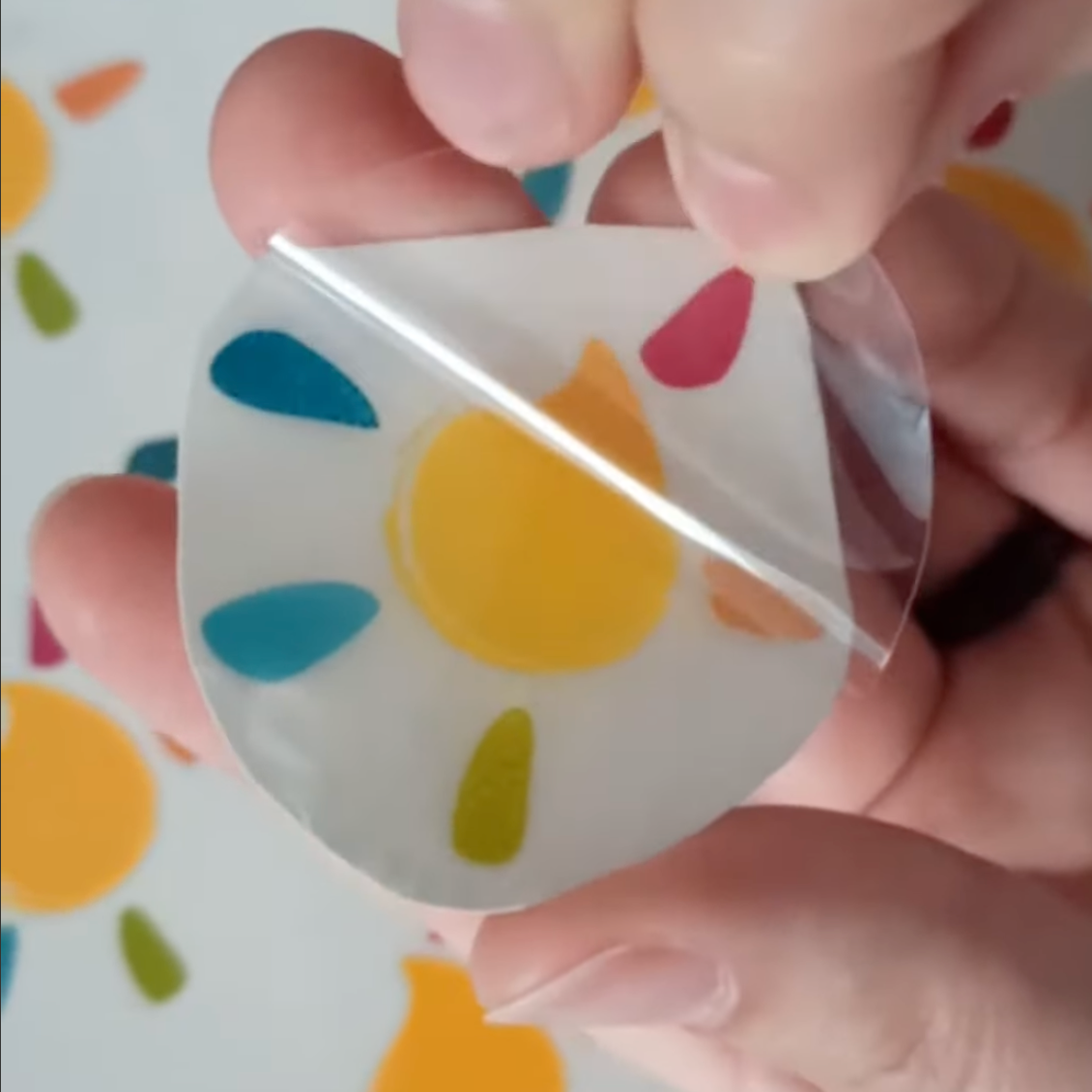 Retirer délicatement la fine pellicule en plastique qui protège le tatouage, puis retourner le tatouage pour le placer à l'endroit souhaité.