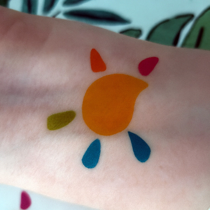 Révéler le tatouage en faisant glisser le papier humide. L'événement est terminé? Utiliser une huile neutre pour le retirer sans effort! :)